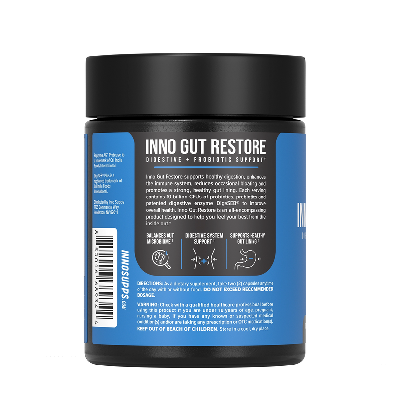 - Patented Complete Digestive Enzymes* Most digestive enzyme supplements don’t contain the full and effective blend of essential enzymes. Inno Gut Restore does and we use DigeSEB® which contains a complete blend of amylase, protease, lipase, cellulase, and lactase.*