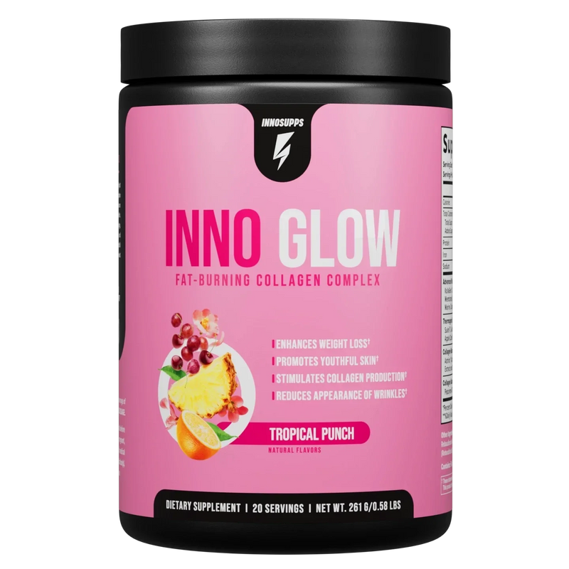 INNO GLOW Who should use Inno Glow? We recommend Inno Glow Fat-Burning Collagen Complex to anyone - male or female - looking to reverse signs of aging, support healthy hair, nails and joints, enhance digestion and gut health all while torching stubborn body fat.* How can Inno Glow help? There are tremendous benefits to taking collagen, including enhancing skin health, relieving joint pain, preventing bone loss, boosting muscle mass, promoting heart health, supporting gut health and strengthening hair and nails. The Thermogenic Fat-Burning Complex in this formula also works to help support weight loss goals by igniting thermogenesis and may even help enhance calorie burn and prevent fat gain.* How do I take Inno Glow? Dissolve one serving in water, juice or your favorite beverage. For maximum absorption, take on an empty stomach.* -