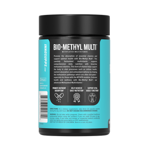 Bio-Methyl Multi™ supports methylation by providing pre-activated forms of vitamins, such as methylfolate and methylcobalamin. These forms bypass the conversion step required by regular multivitamins, ensuring your body can directly utilize these essential nutrients. This helps facilitate over 200 biochemical processes in the body and promote optimal health and wellbeing.*