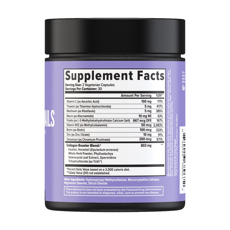 Vitamin C, biotin and riboflavin boost collagen production for thicker, stronger nails. Folate and niacin also increase nail strength by promoting healthy cell growth and improving blood flow to the nails. No more brittle, broken nails!*