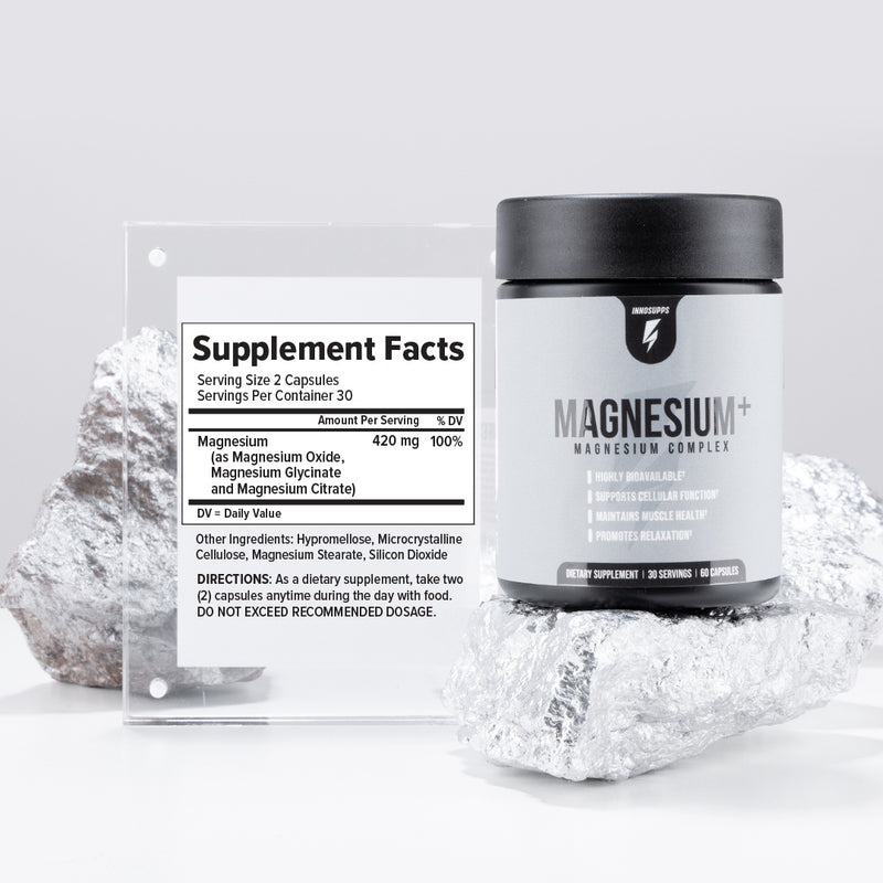 That's why we've formulated a powerful blend using three highly bioavailable forms of Magnesium to ensure maximum absorption and effectiveness. Magnesium oxide supports overall magnesium levels, while magnesium glycinate is gentle on the stomach and aids in relaxation and stress relief.*