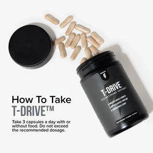 How Do I take T-Drive™? We recommend 3 capsules a day with or without food, whichever you prefer. But if your stomach gets easily irritated, you should take it with food.* -