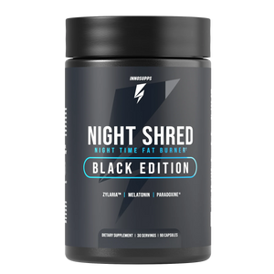 NIGHT SHRED BLACK Can I take this product combined with Inno Shred™ or Volcarn 2000? Inno Shred™, Volcarn 2000 and Night Shred™ can be taken in the same day together, but not at the same time! We recommend taking Night Shred™ six to eight hours after your last dose of Inno Shred™ and Volcarn 2000. Will Night Shred™ show up on a drug test for athletes? While our products do not contain PEDs, we recommend checking over the label with your sports regulating committee before taking any supplement. Can I take this with my thyroid/blood pressure/prescription medication? Please review the label with your physician before making a purchase. -