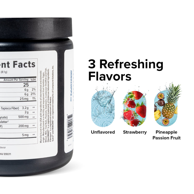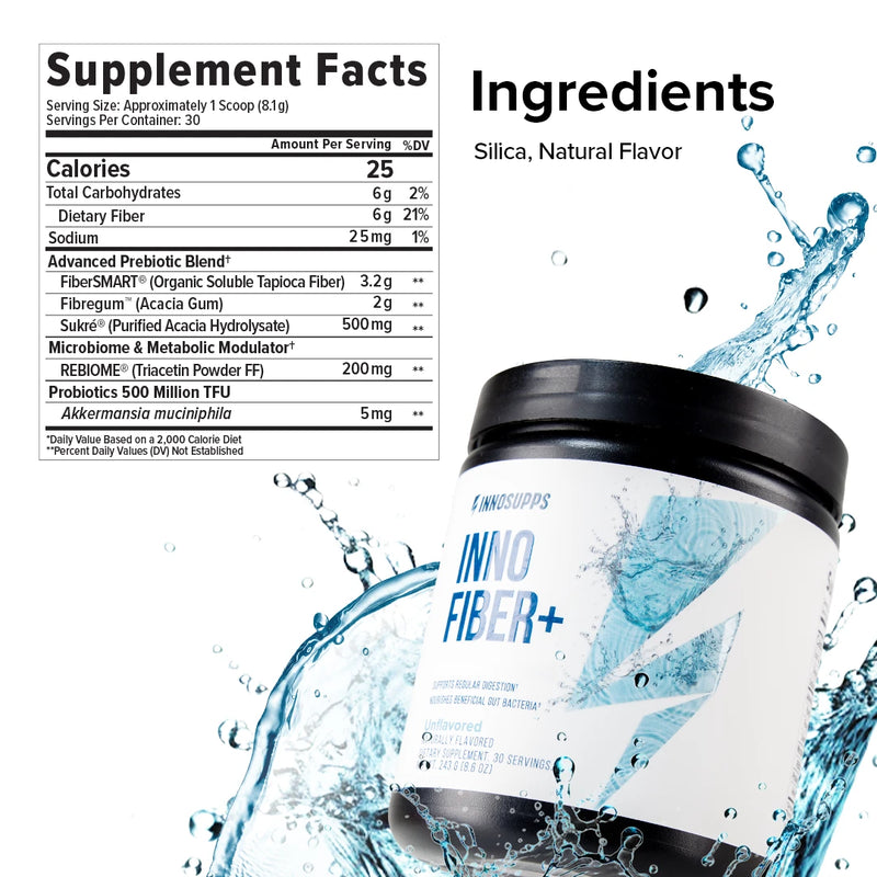 This is the most common concern we hear, and for good reason. Many fiber supplements cause significant bloating and gas. Inno Fiber+ is specifically formulated to avoid this. Our primary fiber source, FiberSMART®, We also use Fibregum® (acacia gum), which has a slow fermentation profile that produces significantly less gas than other prebiotics like inulin. That said, if you're new to fiber supplementation, we recommend starting with half a scoop for the first 3-5 days to let your gut adjust.